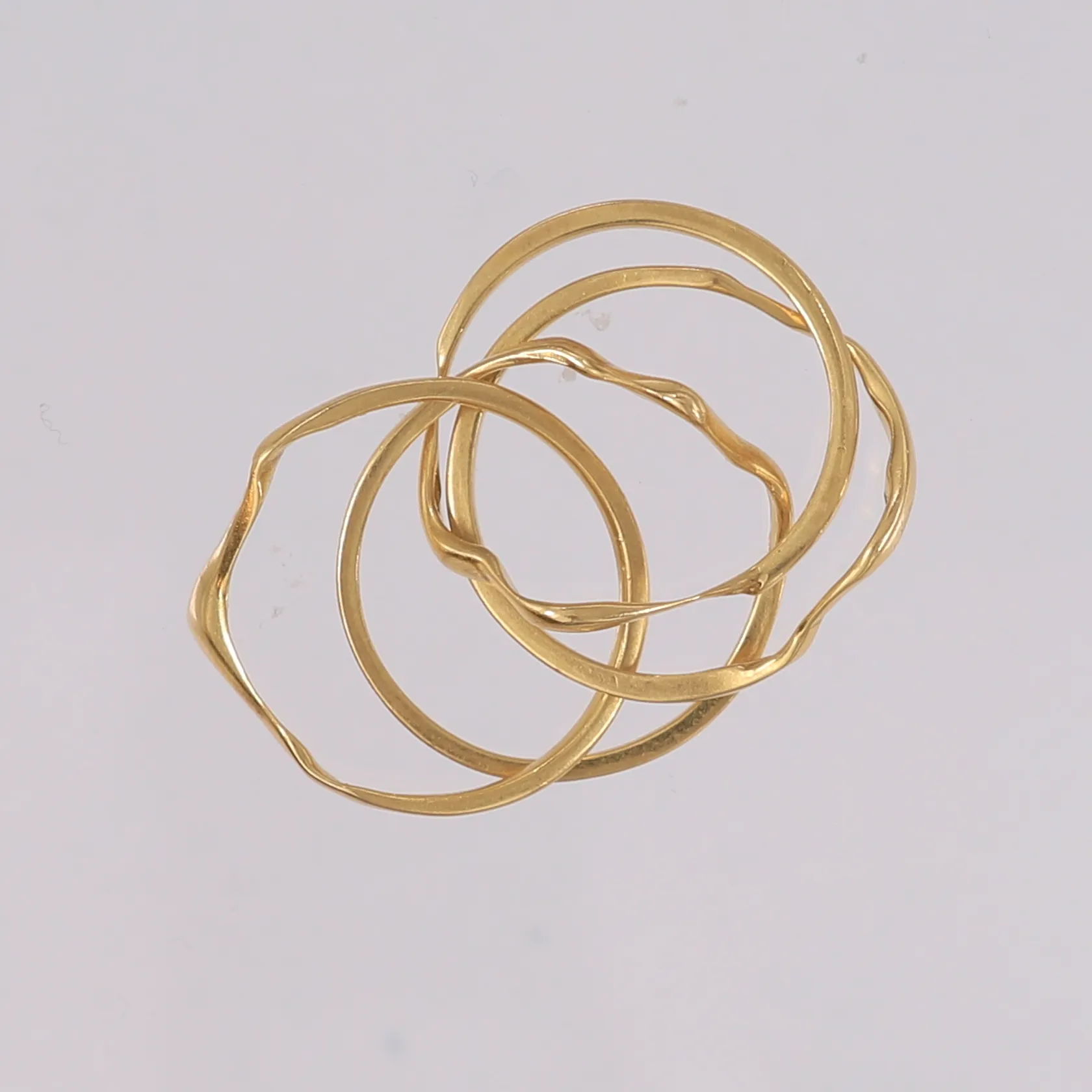 Flettering med 4 ringer, ø17,5mm, bredde 3,4- 5,4mm, 18K Vekt: 6,9 g Kontakt Lånekontoret for frakt