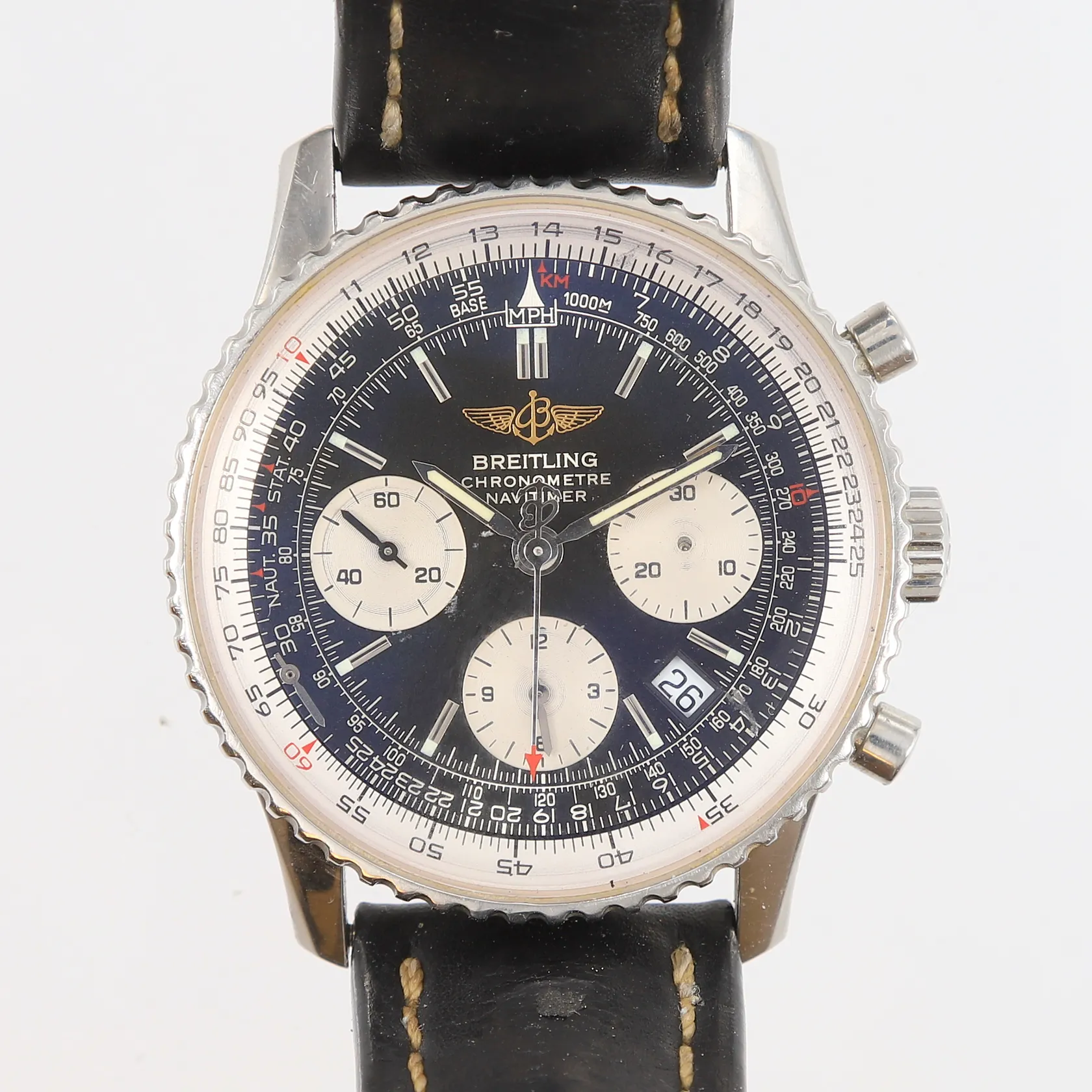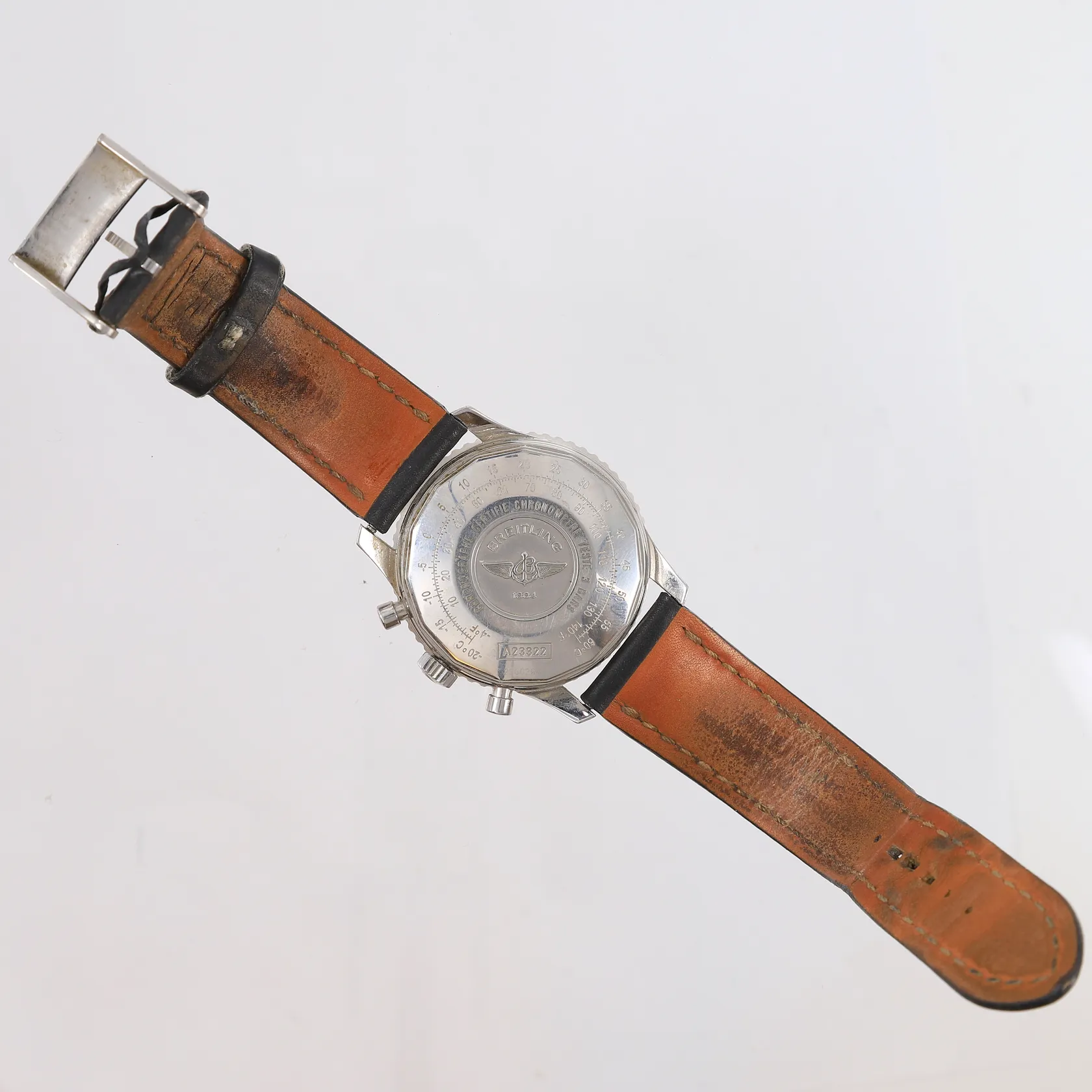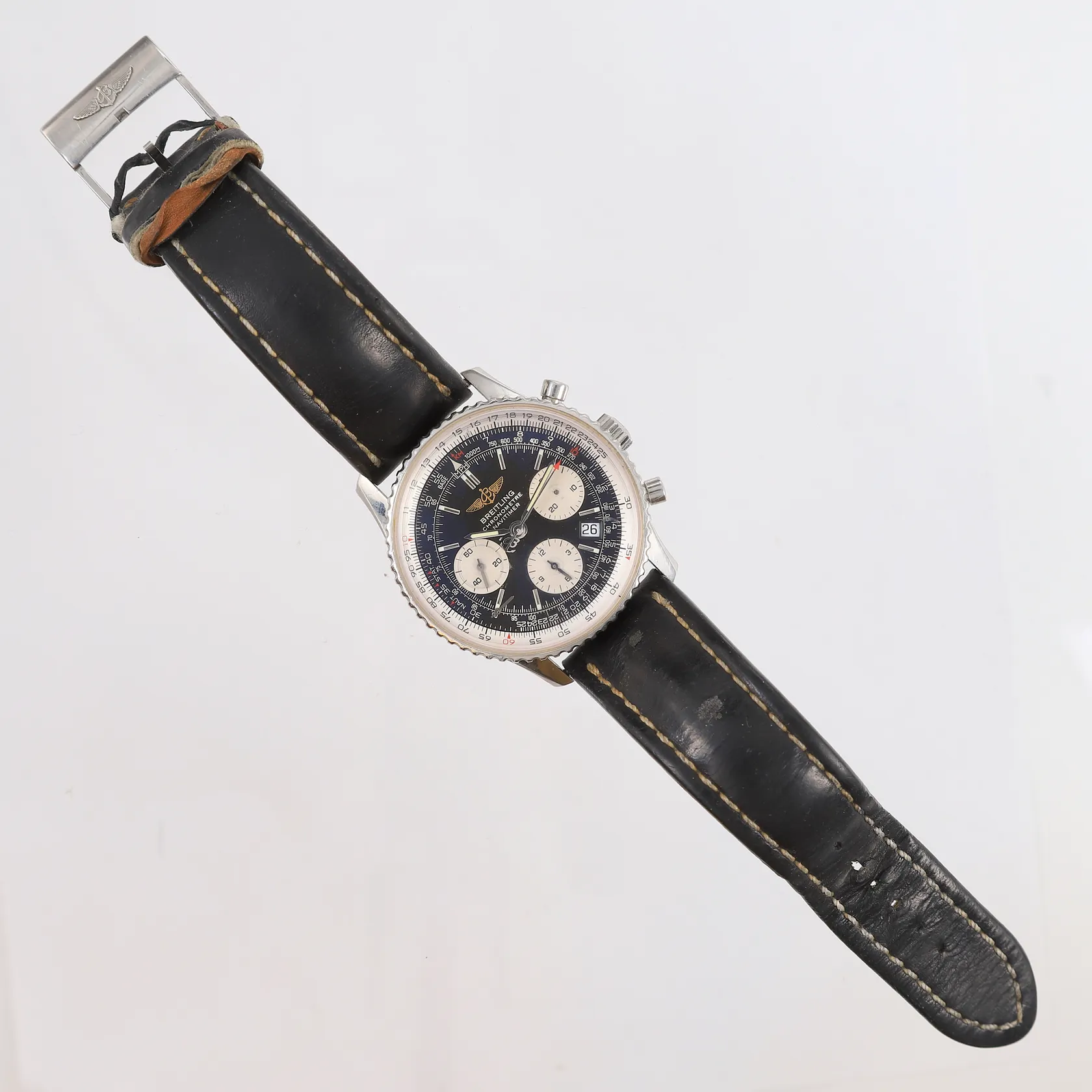 Armbåndsur Breitling Navitimer, ref A2332212/B635, snr 2260264, stål, automat, ø42mm, dato, kronograf, sliten lærrem, sertifikat USA år 2008, papirer, kronometersertifikat, klokken trenger service, kronografviseren er løs, sliten boks og yttereske. Vekt: 0 g Kontakt Lånekontoret for frakt