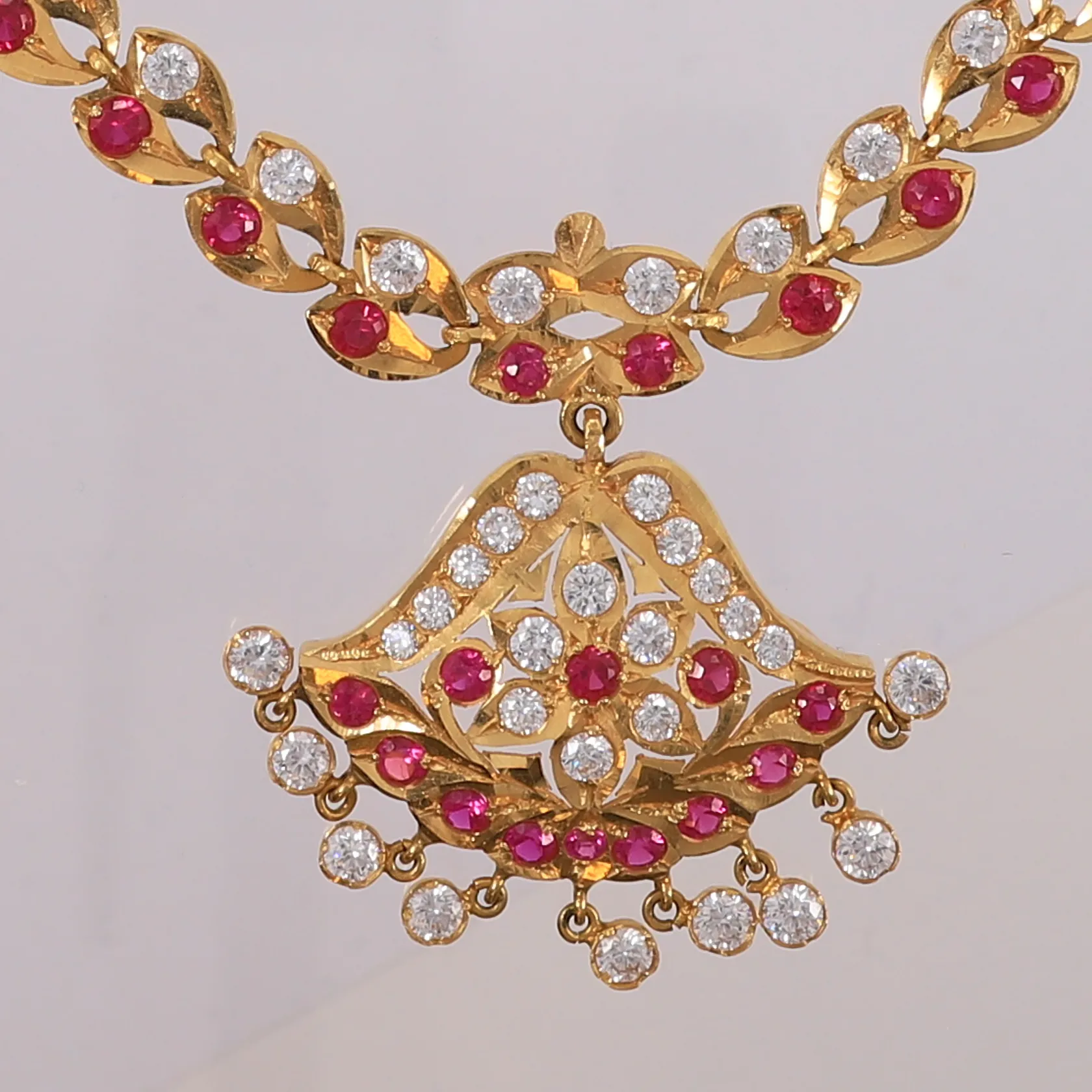 Halssmykke med lilla og blanke stener, lengde 36cm, bredde 8,6- 47mm, 22K, bruttovekt 32,6g Vekt: 0 g Kontakt Lånekontoret for frakt