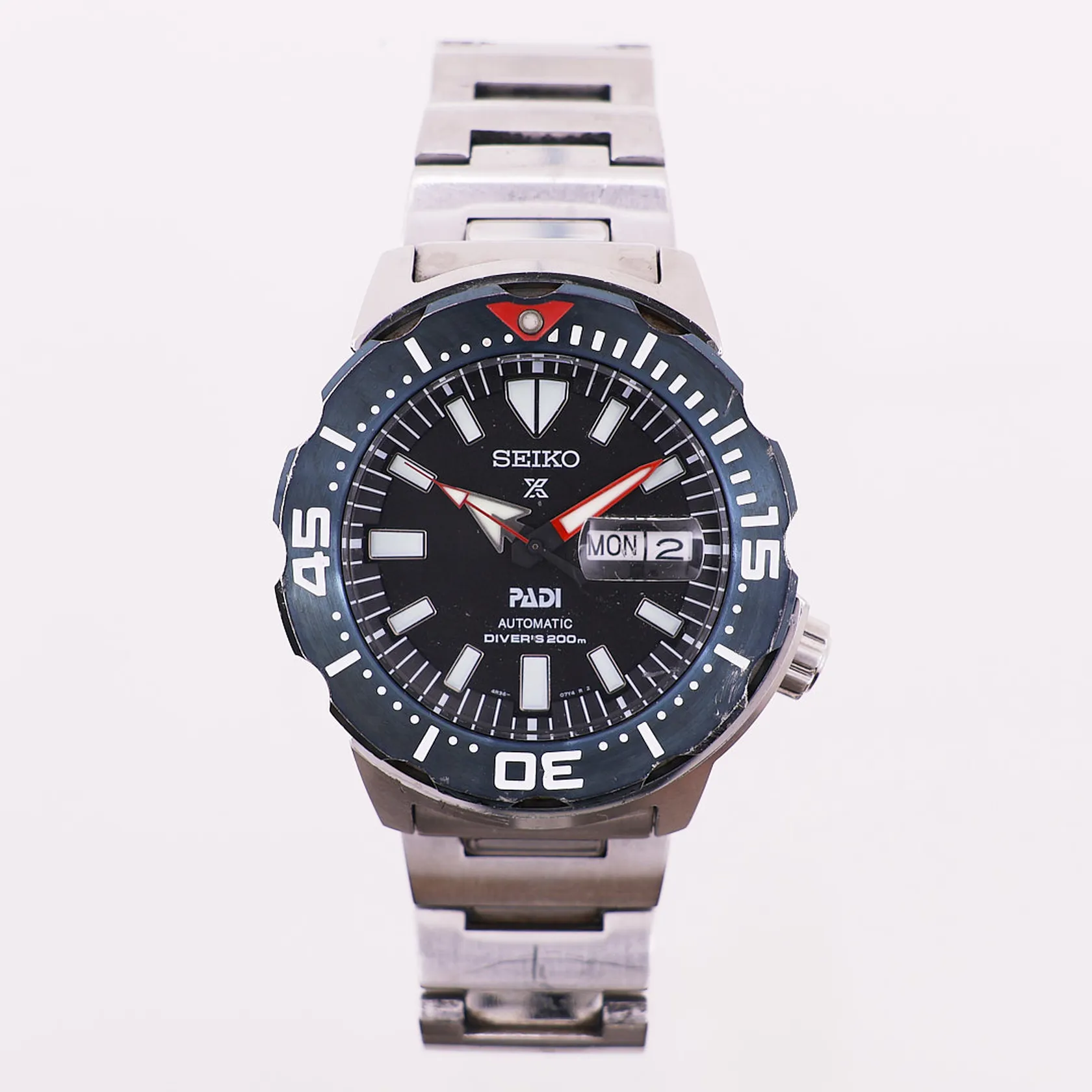 Seiko Padi Divers 200m, Prospex, 4R36-07Y4 R 2, Ø 42 mm, stål, automatisk, ukedag, dato. Foldespenne, dreibar bezel, uten boks og øvrig tilbehør Kontakt Lånekontoret for frakt