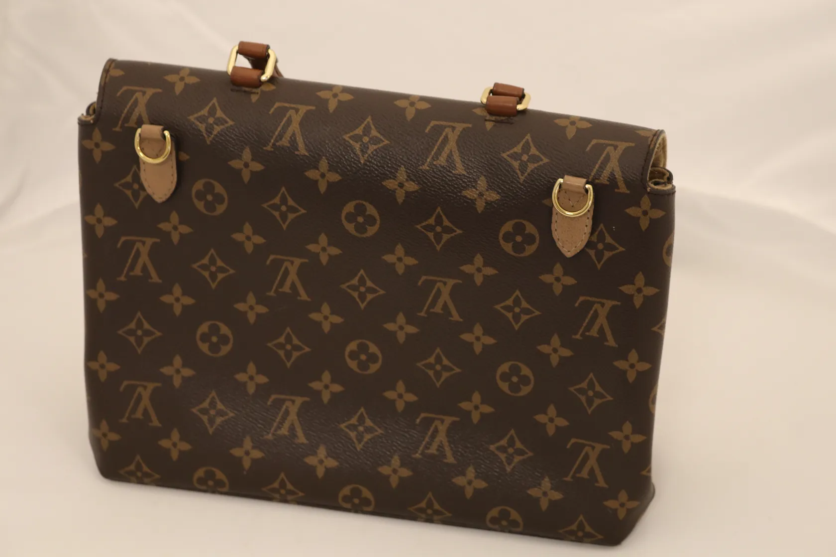 Veske, Louis Vuitton M44257 Marignan Monogram Canvas & Grained Leather Sesame, ca. 30x23x12 cm, med originalboks, skulderrem, dustbag og kvittering (kjøpt Louis Vuitton Oslo, juni 2018) Kontakt Lånekontoret for frakt