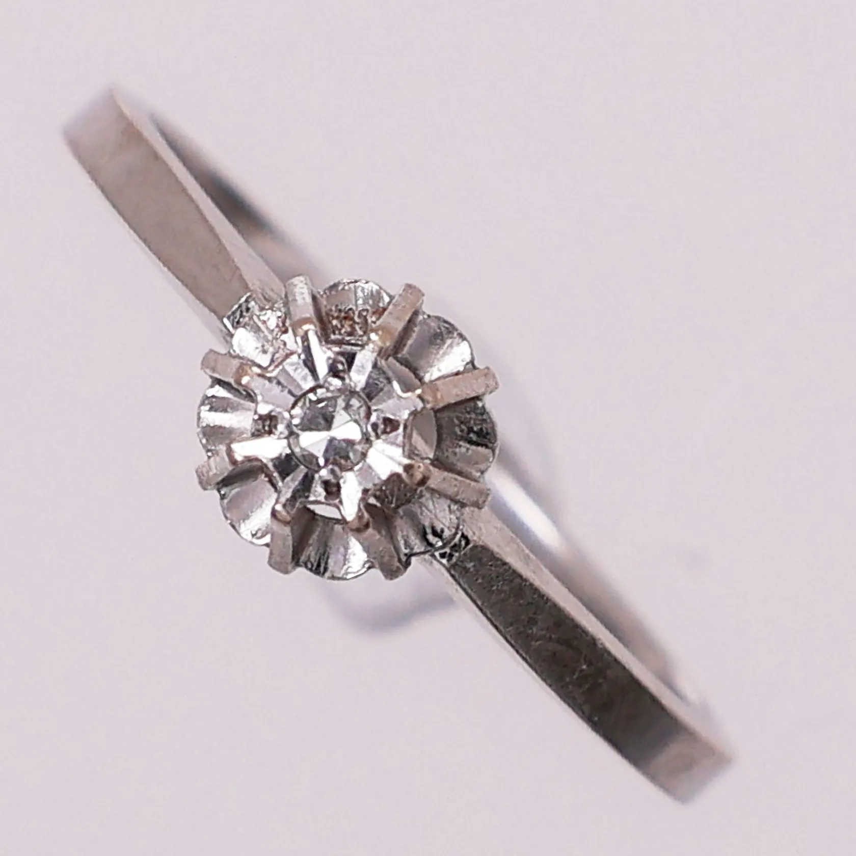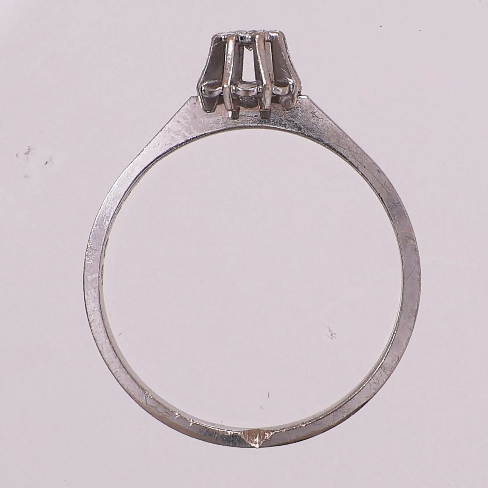 Ring med diamant, 1 x ca 0,02 ct, Ø 17,2 mm, bredde 1,7 - 5,9 mm, 14K Vekt: 1,9 g Kontakt Lånekontoret for frakt
