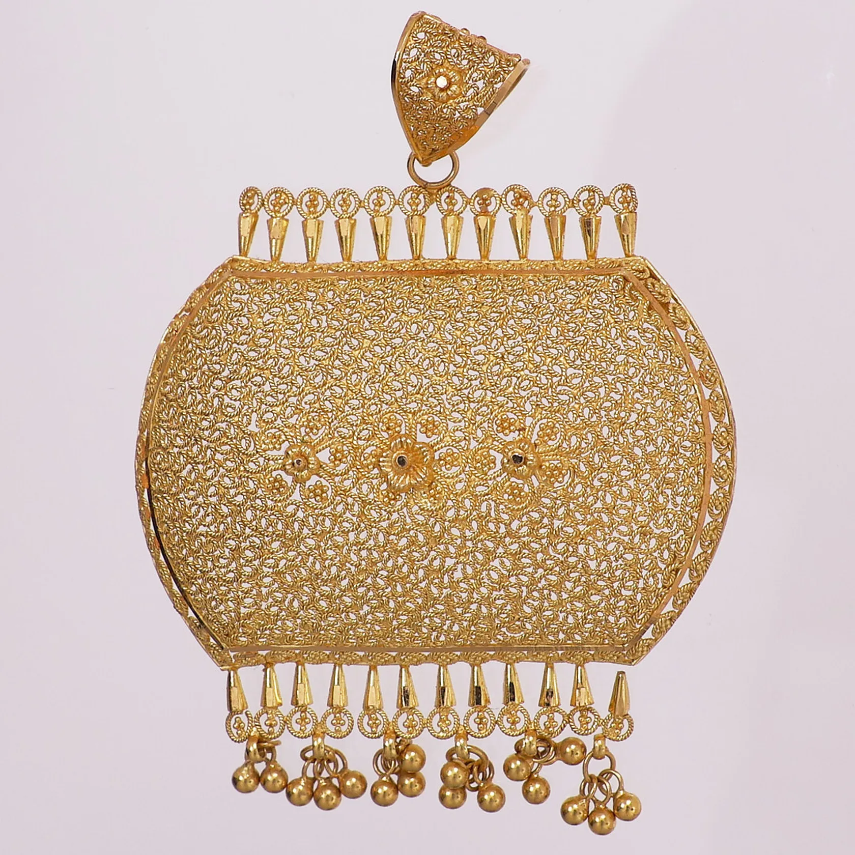 Anheng, lengde 67,5 mm, bredde 49,6 mm, skadet, 21K Vekt: 15,1 g Kontakt Lånekontoret for frakt