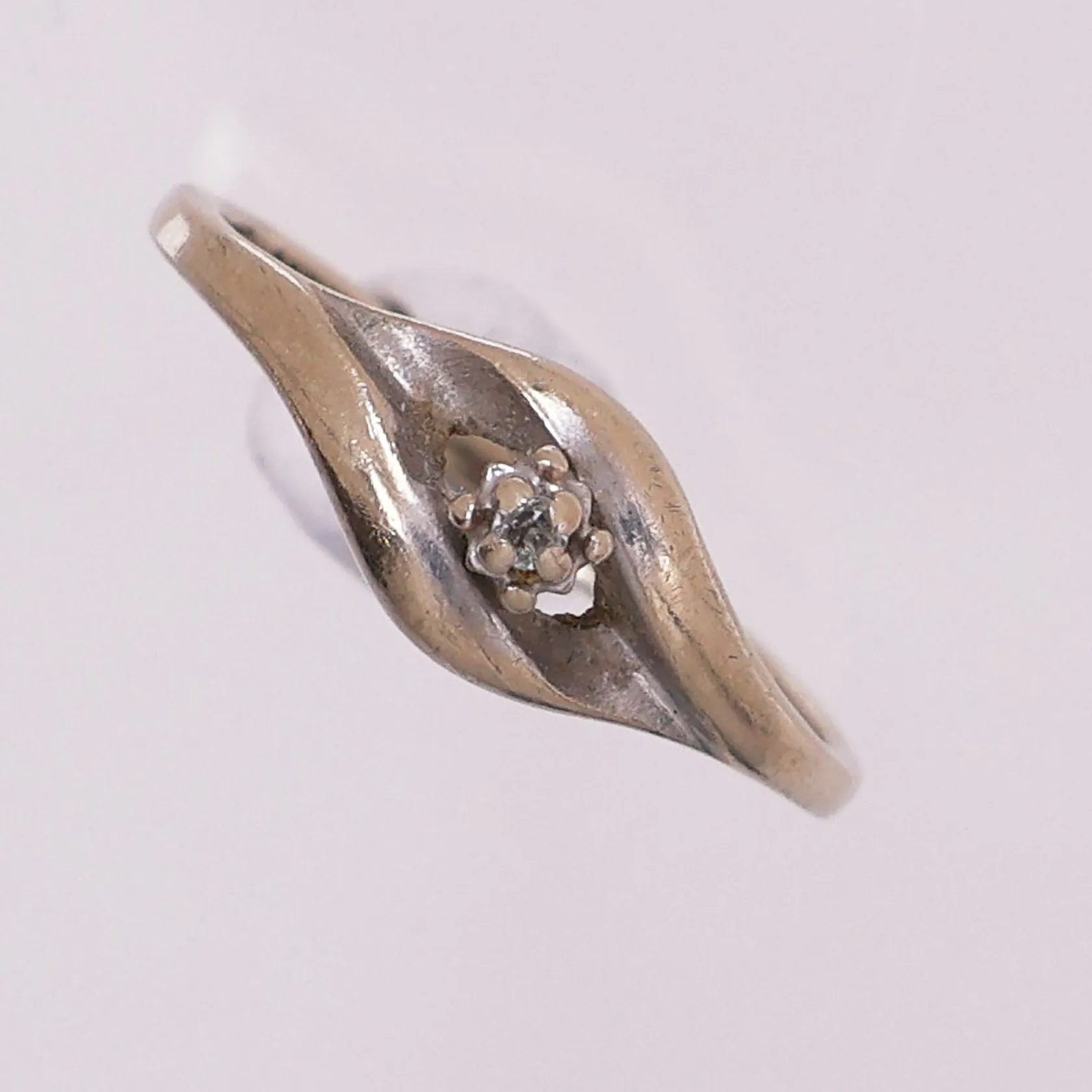 Ring med klar sten, Ø 16,9 mm, bredde 1,7 - 6,1 mm, defekt, 14K Vekt: 1,8 g Kontakt Lånekontoret for frakt