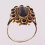 Ring med blå sten, Ø 17,2 mm, bredde 2,2 - 23,3 mm, 14K Vekt: 3,9 g Kontakt Lånekontoret for frakt