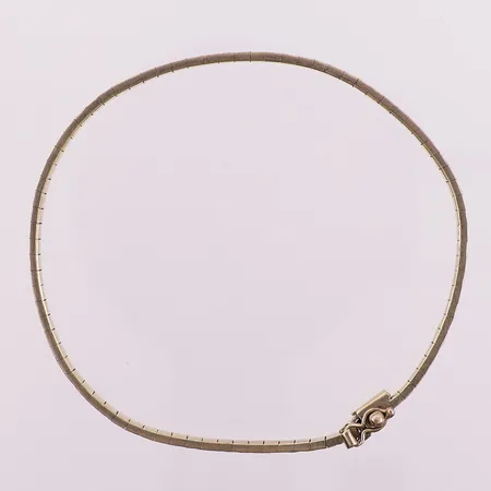 Halskjede, lengde 46,2 cm, bredde 3,5 mm, 21K Vekt: 17,5 g Kontakt Lånekontoret for frakt