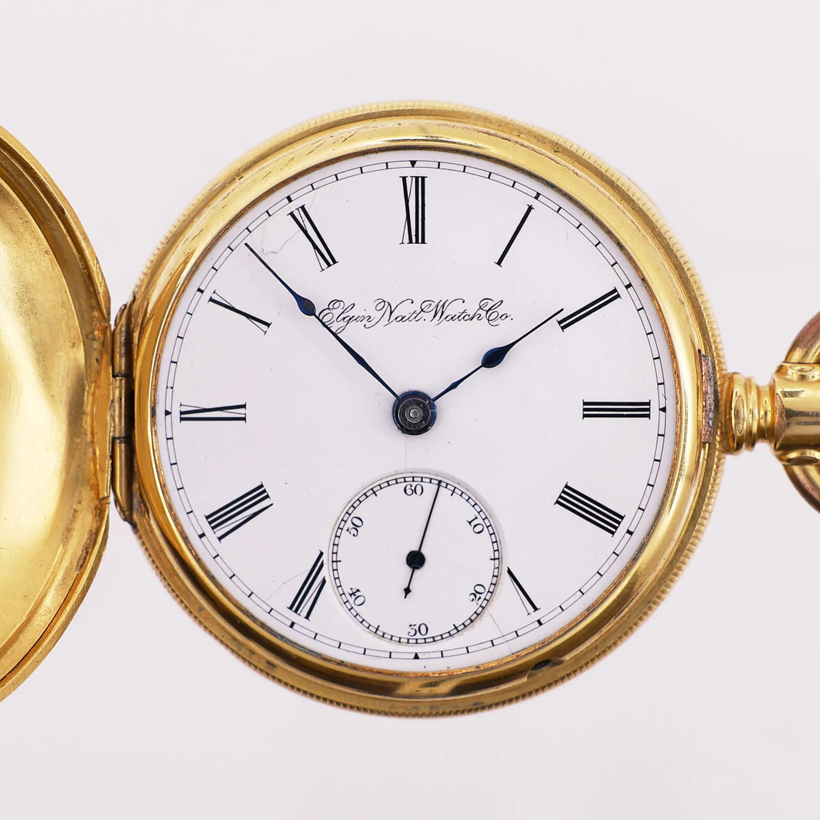 Skrotgull, Savonett, Elgin National Watch Company, serienr: 501248, Ø 52,8 mm, bredde 17,5 cm, bakboett 14K, bulket, trenger service, bruttovekt 108,9g Vekt: 5 g Kontakt Lånekontoret for frakt