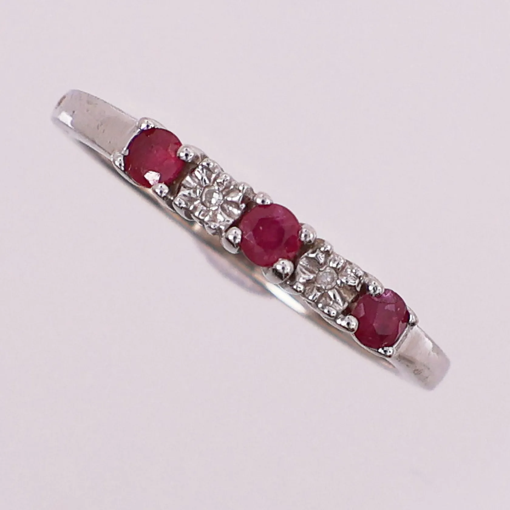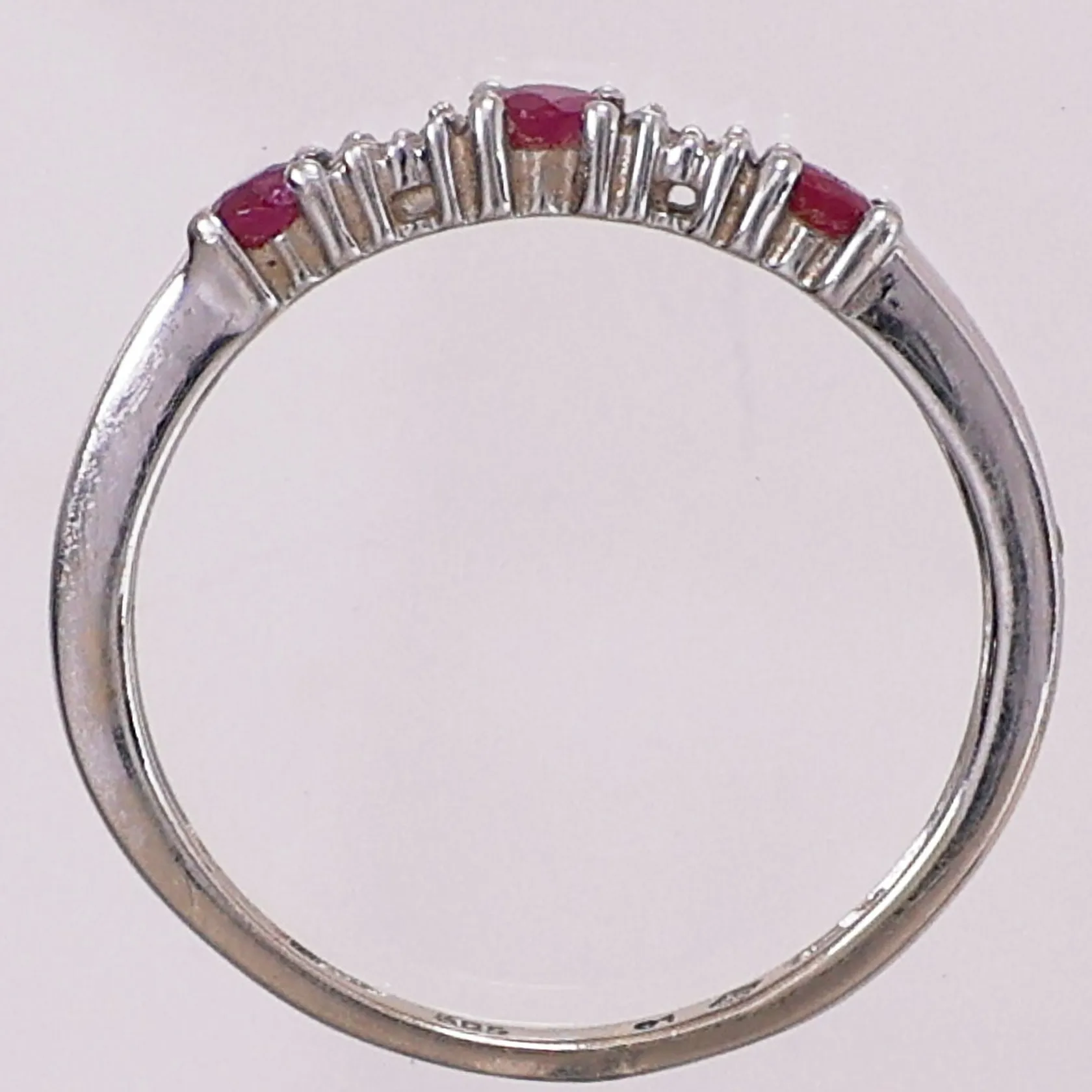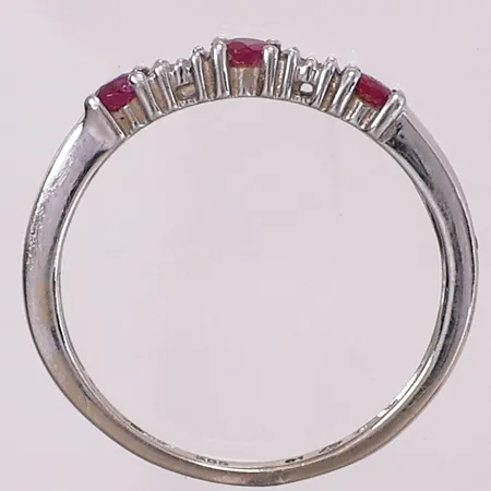 Ring med lilla og klare stener, Ø 17,8 mm, bredde 1,5 - 2,8 mm, 14K Vekt: 1,7 g Kontakt Lånekontoret for frakt