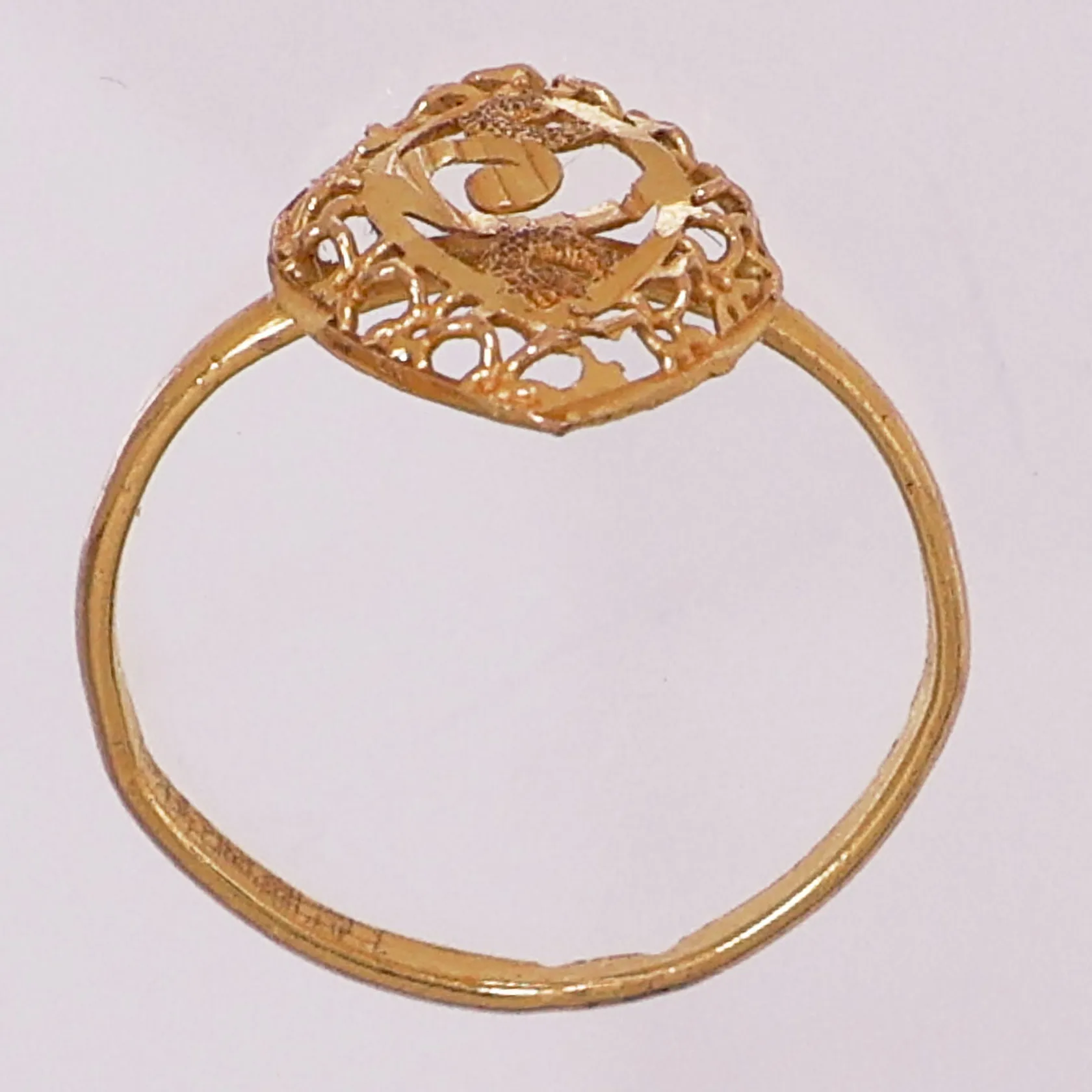 Ring, Ø 16,3 mm, bredde 1,5 - 15,4 mm, mangler stempel, 21K Vekt: 1,5 g Kontakt Lånekontoret for frakt