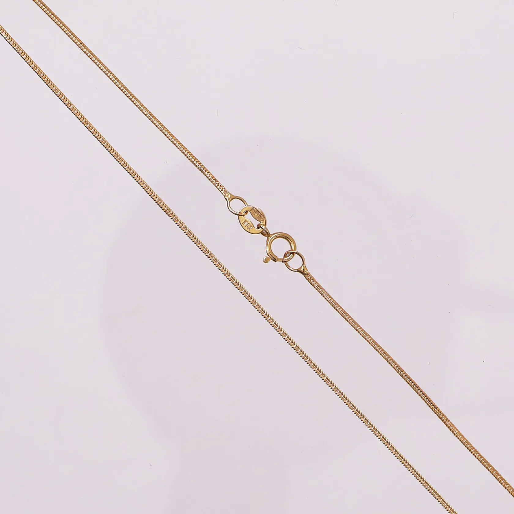 Halskjede, lengde 40,6 cm, bredde 0,8 mm, 21K Vekt: 1,6 g Kontakt Lånekontoret for frakt