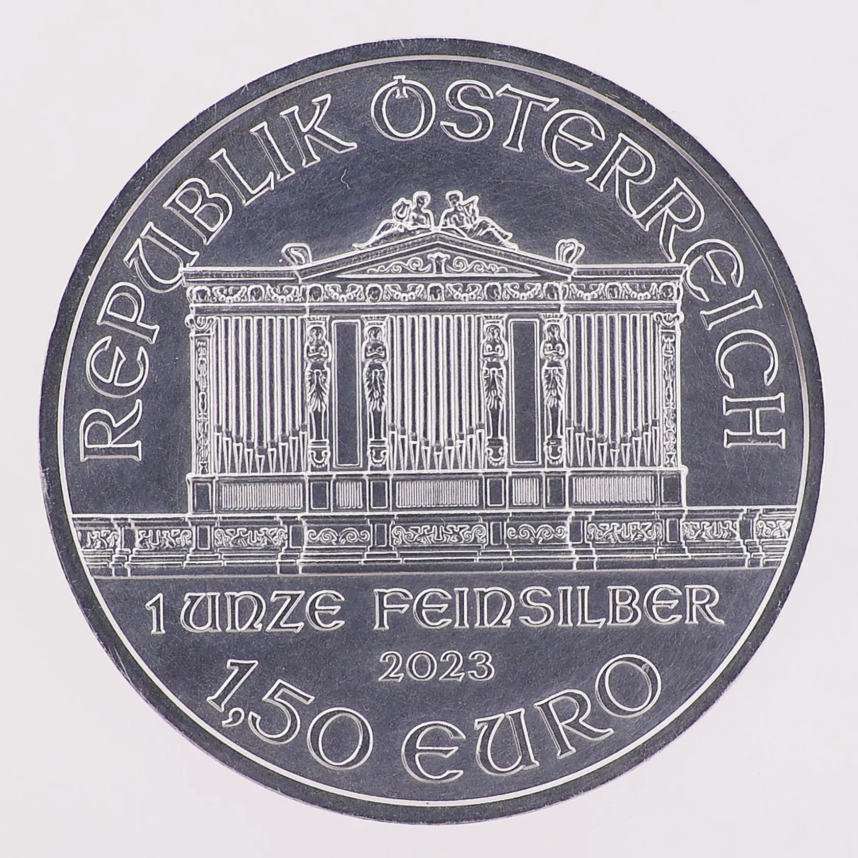 Sølvmynt, Austrian Silver Philharmonic, Wiener Philharmoniker, 1 oz, 1,50 Euro, år 2023, uten myntkapsel, 999S Vekt: 31,2 g Kontakt Lånekontoret for frakt