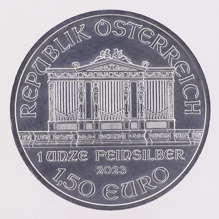 Sølvmynt, Austrian Silver Philharmonic, Wiener Philharmoniker, 1 oz, 1,50 Euro, år 2023, uten myntkapsel, 999S Vekt: 31,1 g Kontakt Lånekontoret for frakt