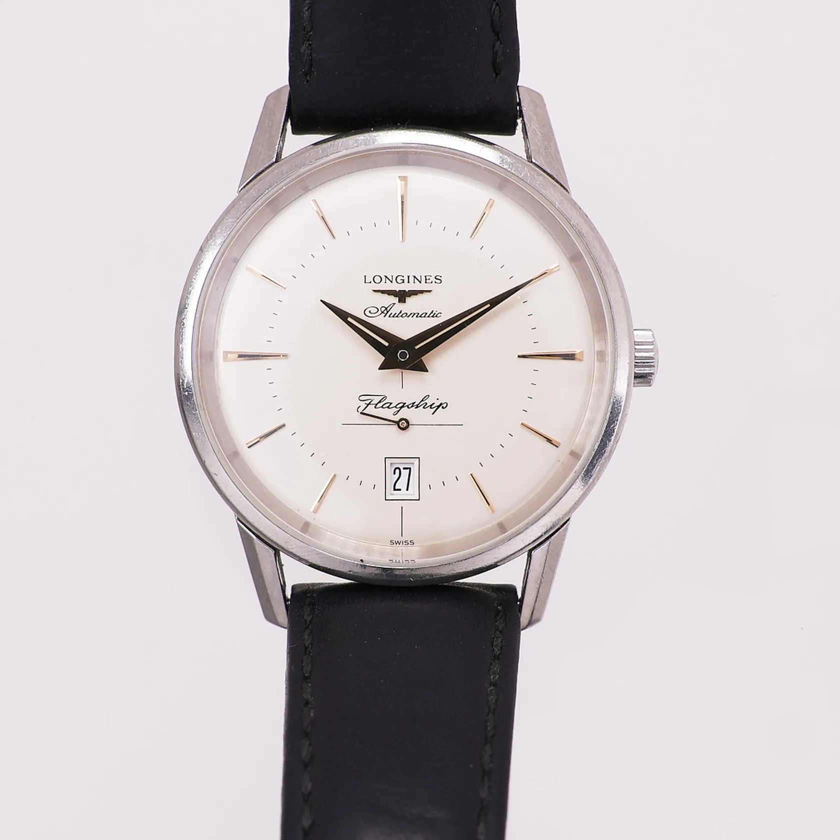 Longines Flagship Heritage, automatisk, dato, RN L4.795.4, SN 48265098, slitt skinnreim, trenger service, uten tilbehør Kontakt Lånekontoret for frakt