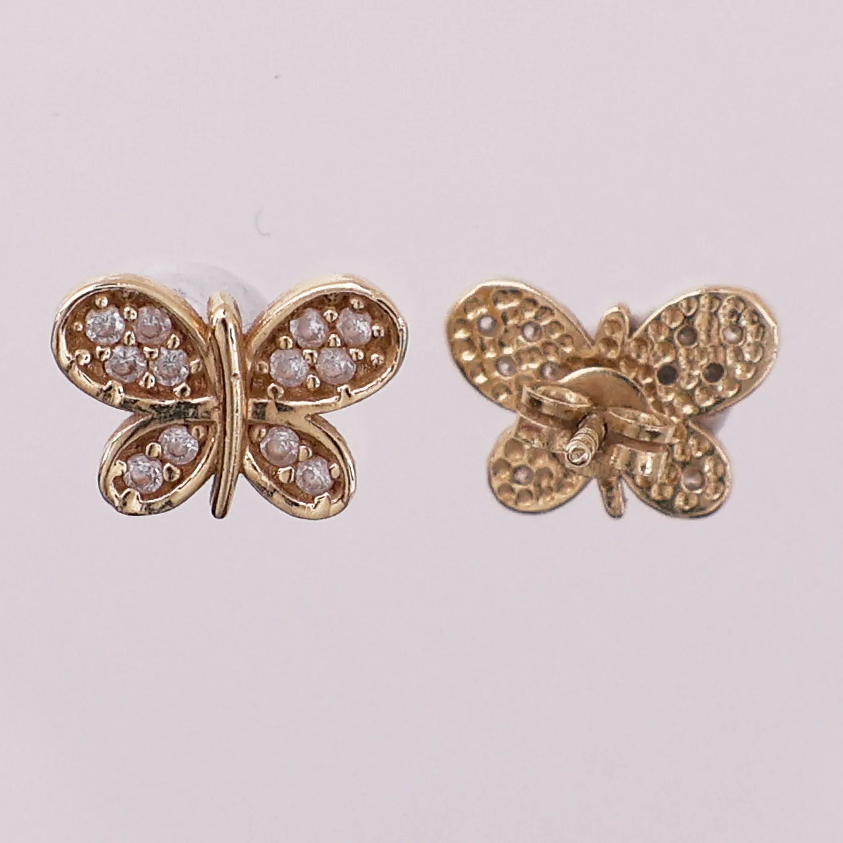 Ett par øredobber med klare stener, lengde 1,2 cm, bredde 7,7 mm, mangler stempel, skjev, 14K Vekt: 1,8 g Kontakt Lånekontoret for frakt