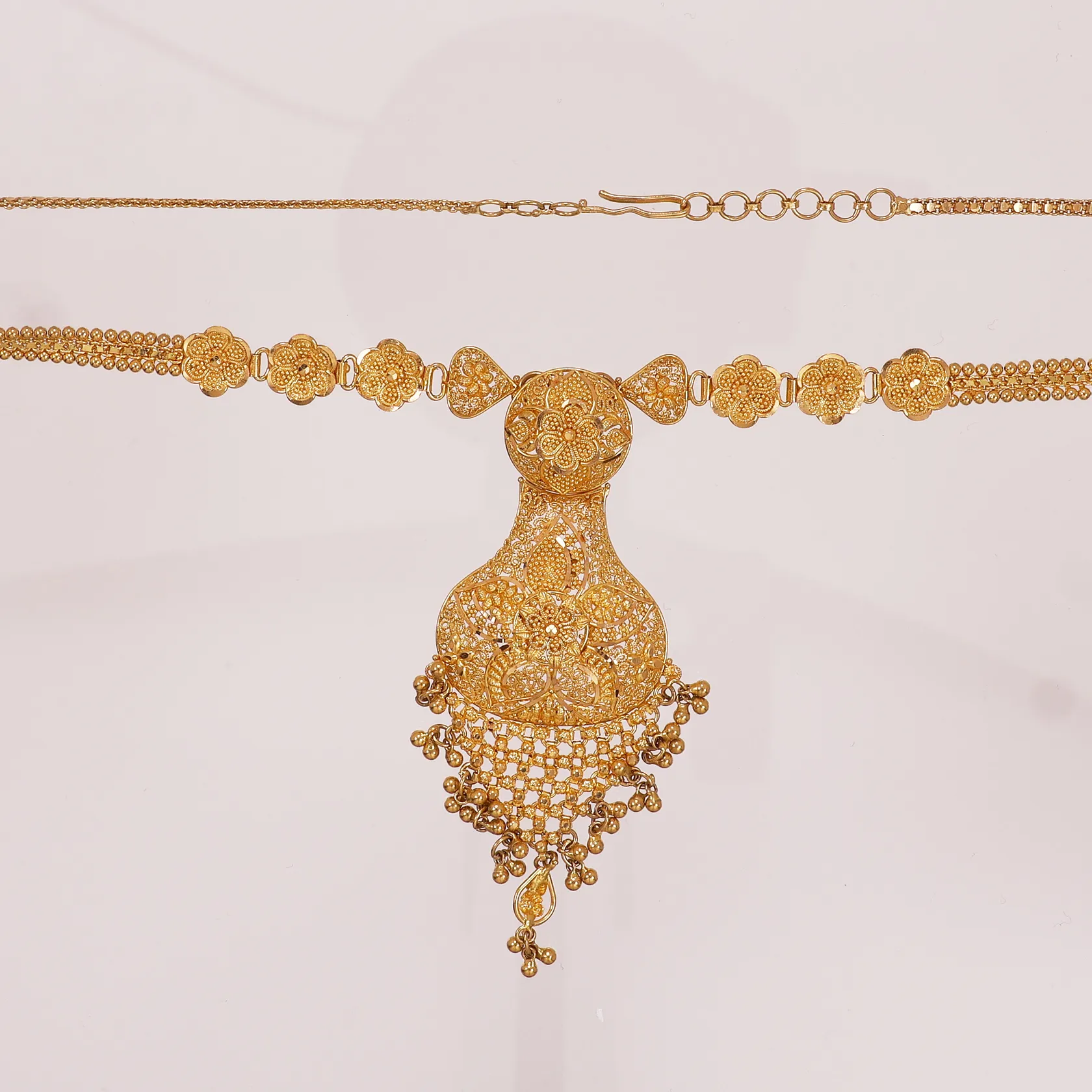 Halssmykke, lengde 57cm, bredde 5-29mm, 22K Vekt: 42,1 g Kontakt Lånekontoret for frakt