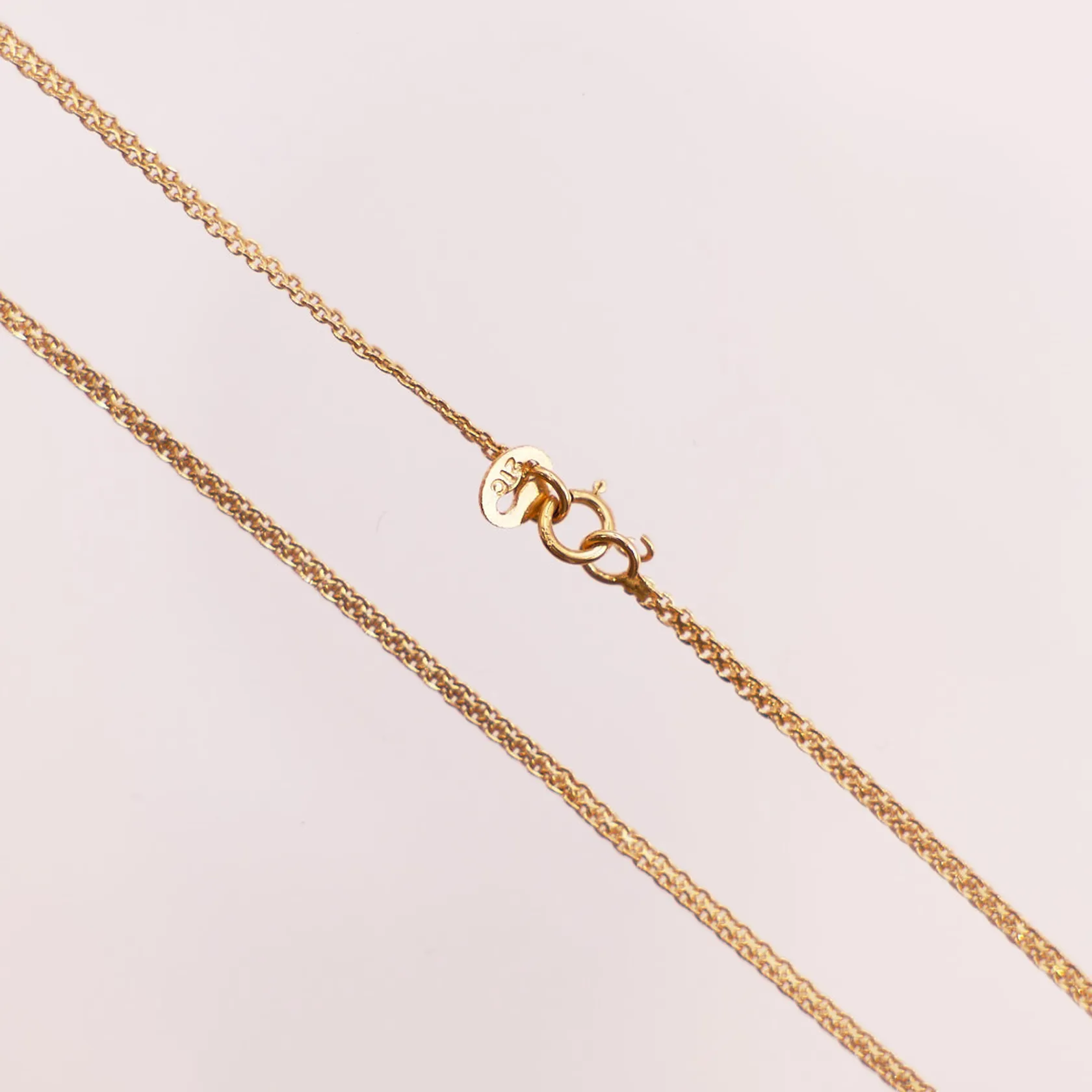 Kjede, lengde 40,5cm, bredde 1,6mm, skade på lås, 21K Vekt: 3,6 g Kontakt Lånekontoret for frakt