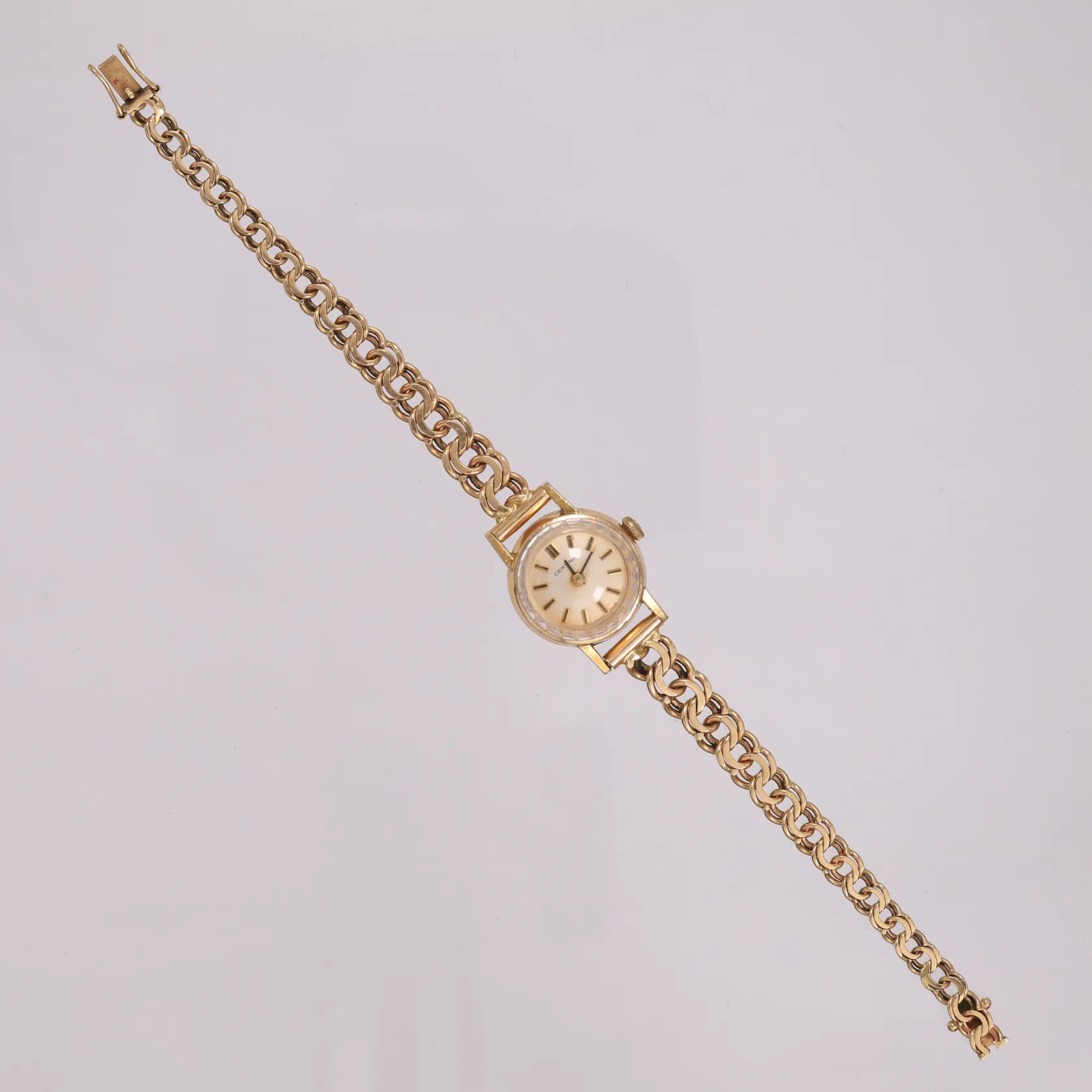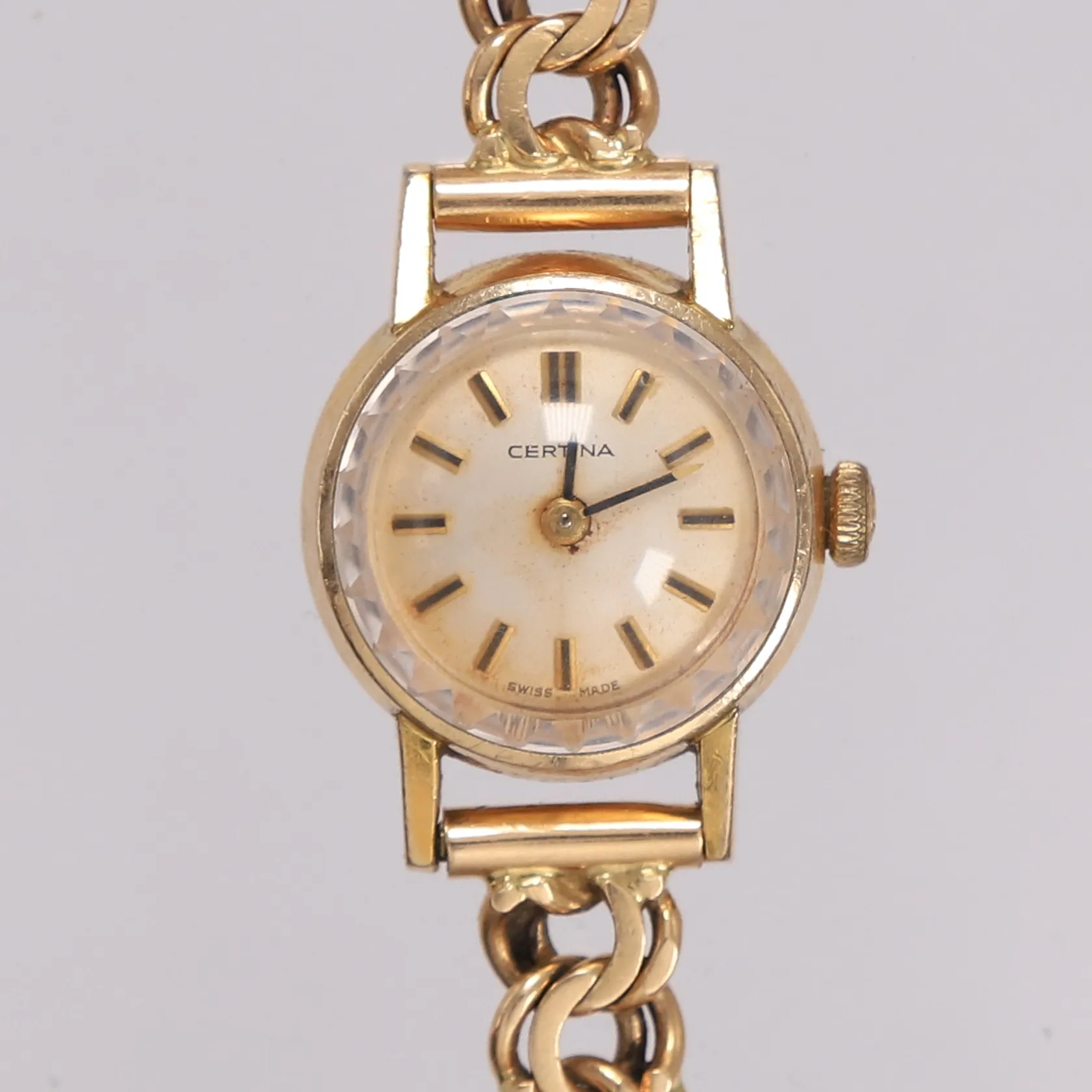Armbåndsur gull med Bismarck gull-lenke, Certina, manuell, lengde 17,5cm, bredde 4-19mm, baklokk i metall, ikke funksjonstestet, 14K, bruttovekt 17,9g Kontakt Lånekontoret for frakt