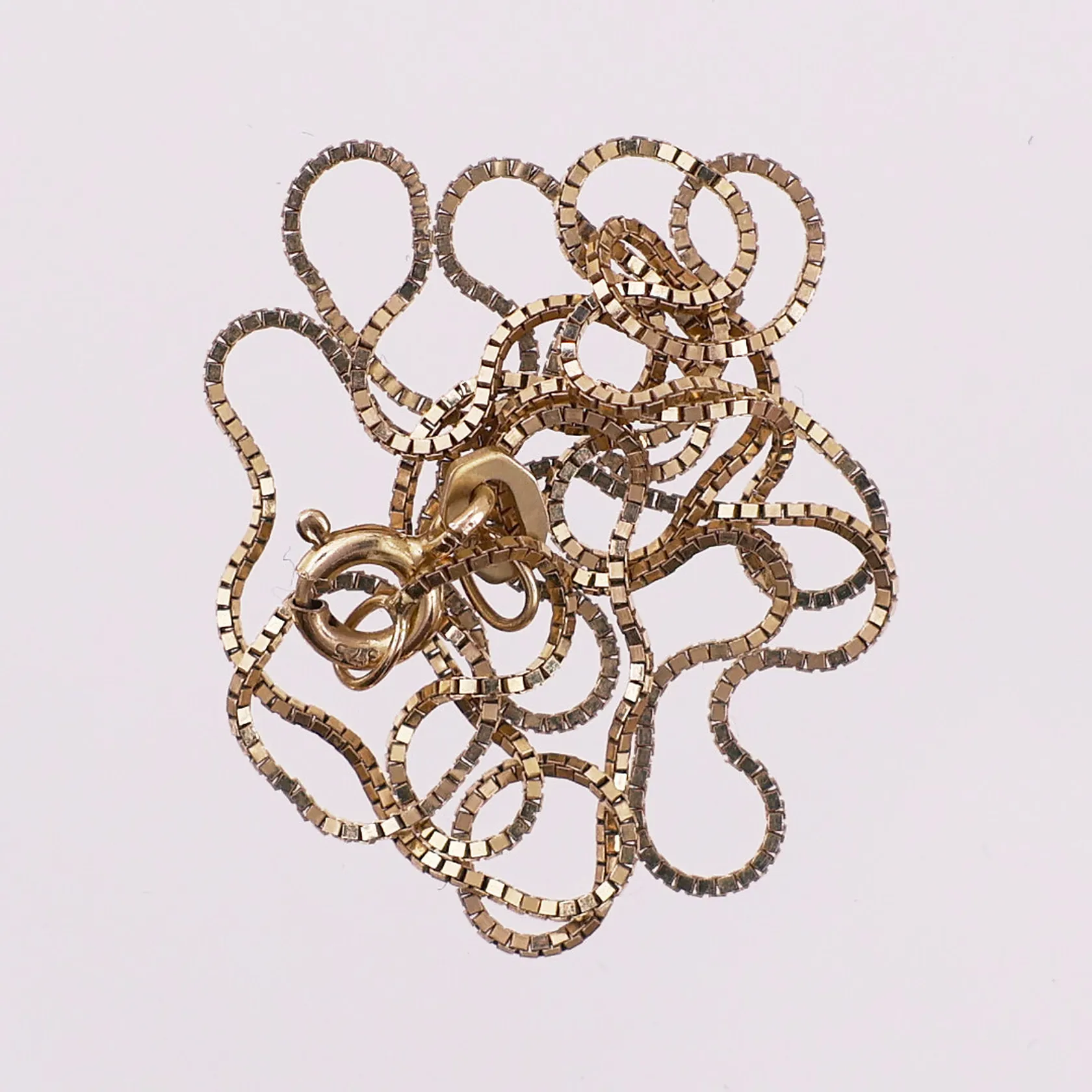 Kjede, lengde 41,5cm, bredde 0,6mm, 21K Vekt: 0,9 g Kontakt Lånekontoret for frakt