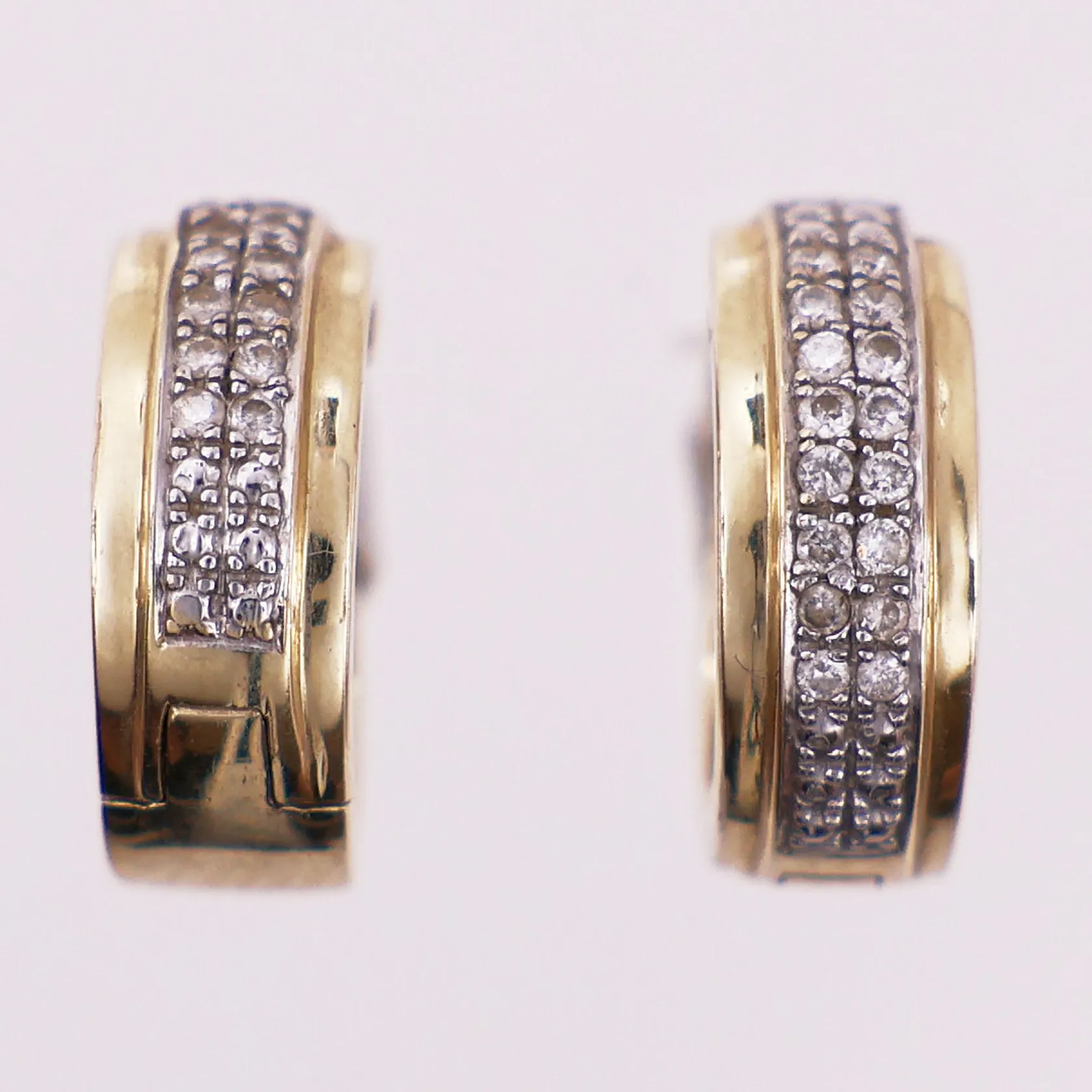 Ett par dobber diamanter, totalt 36 x ca 0,01ct, ø 16mm, bredde 5,9mm, 14K Vekt: 6 g Kontakt Lånekontoret for frakt