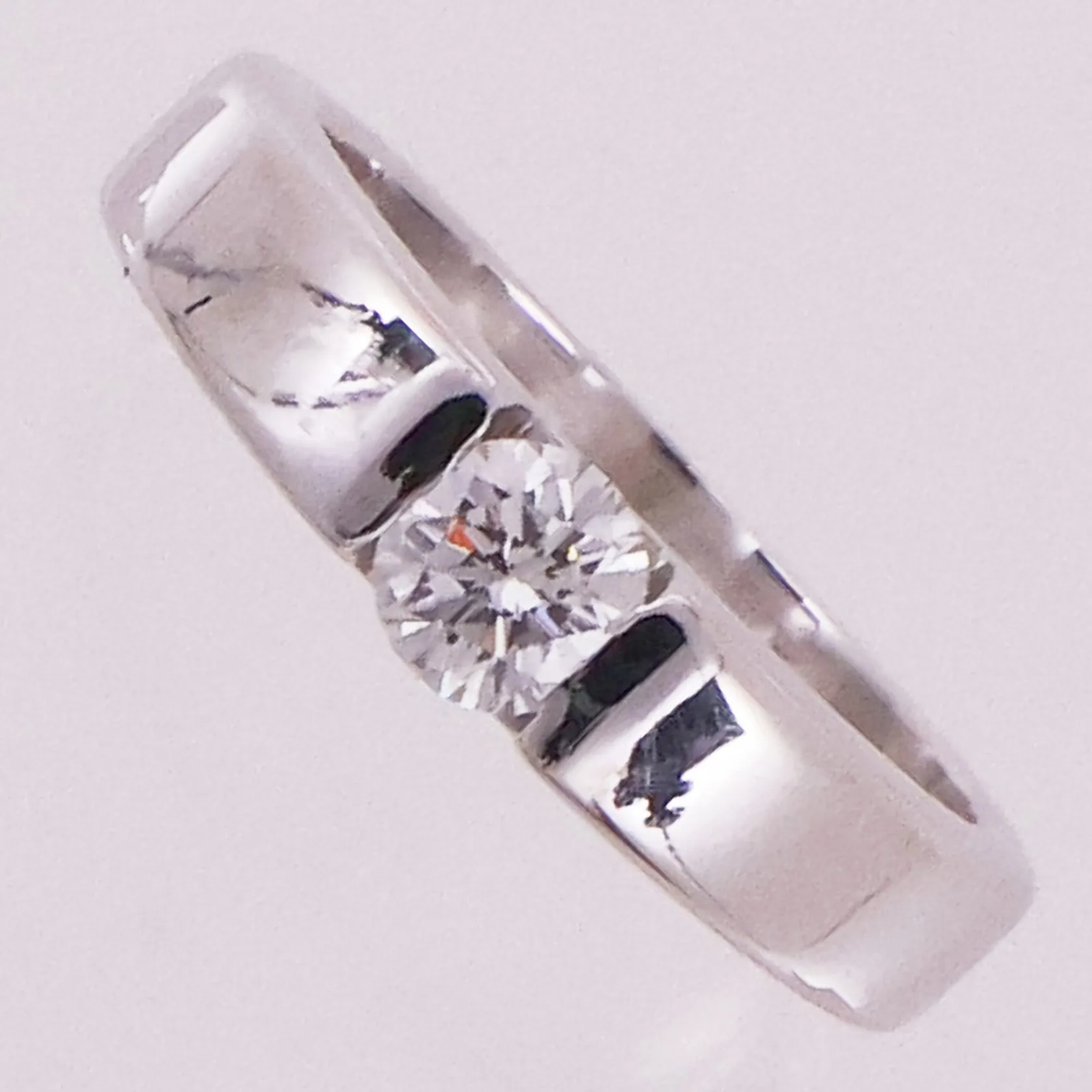 Ring med diamant, 1 x ca 0,40ct, ø 17,5, bredde 4,8mm, hvitt gull, 18K Vekt: 6,5 g Kontakt Lånekontoret for frakt