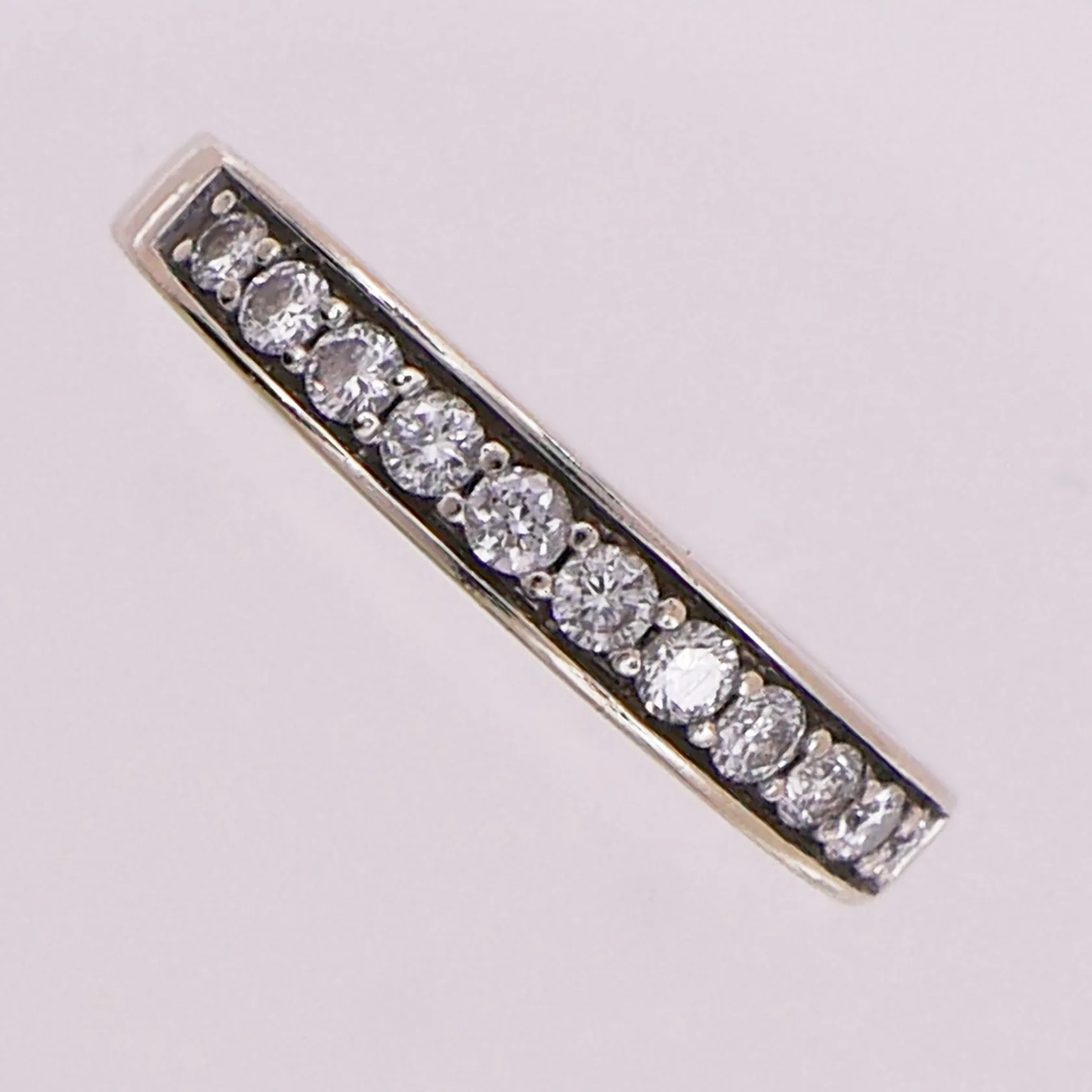 Ring med klare stener, ø 17,2mm, bredde 4,9mm, 14K Vekt: 1,6 g Kontakt Lånekontoret for frakt