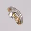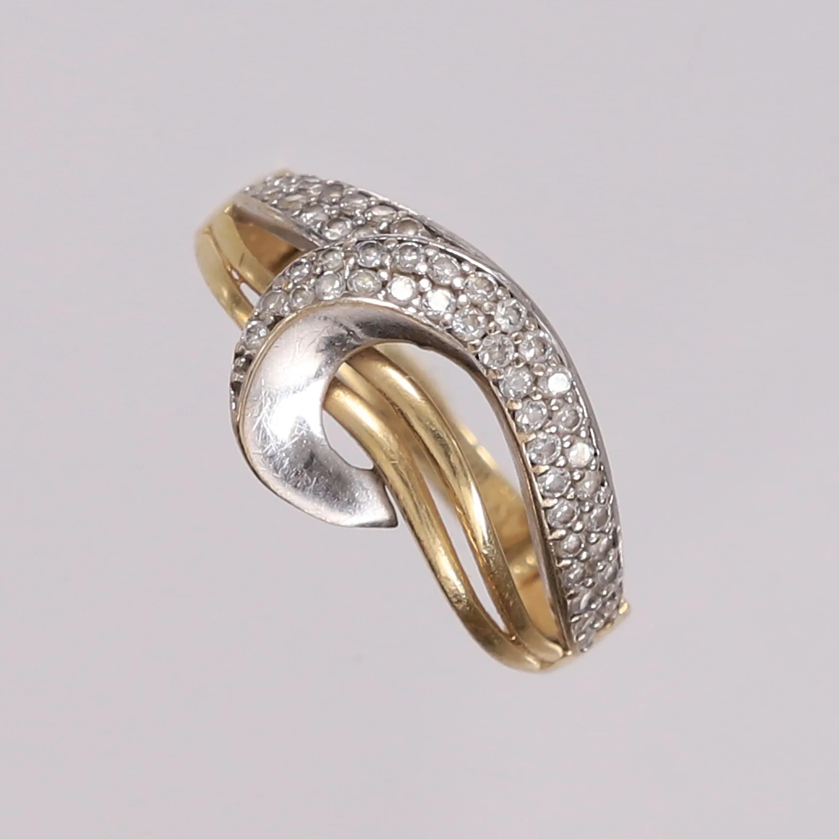 Ring, tofarget med klare stener, ø 17,5mm, bredde 2,3-11,7mm, 14K. Utstilt på Grønland. Vekt: 3,1 g Kontakt Lånekontoret for frakt