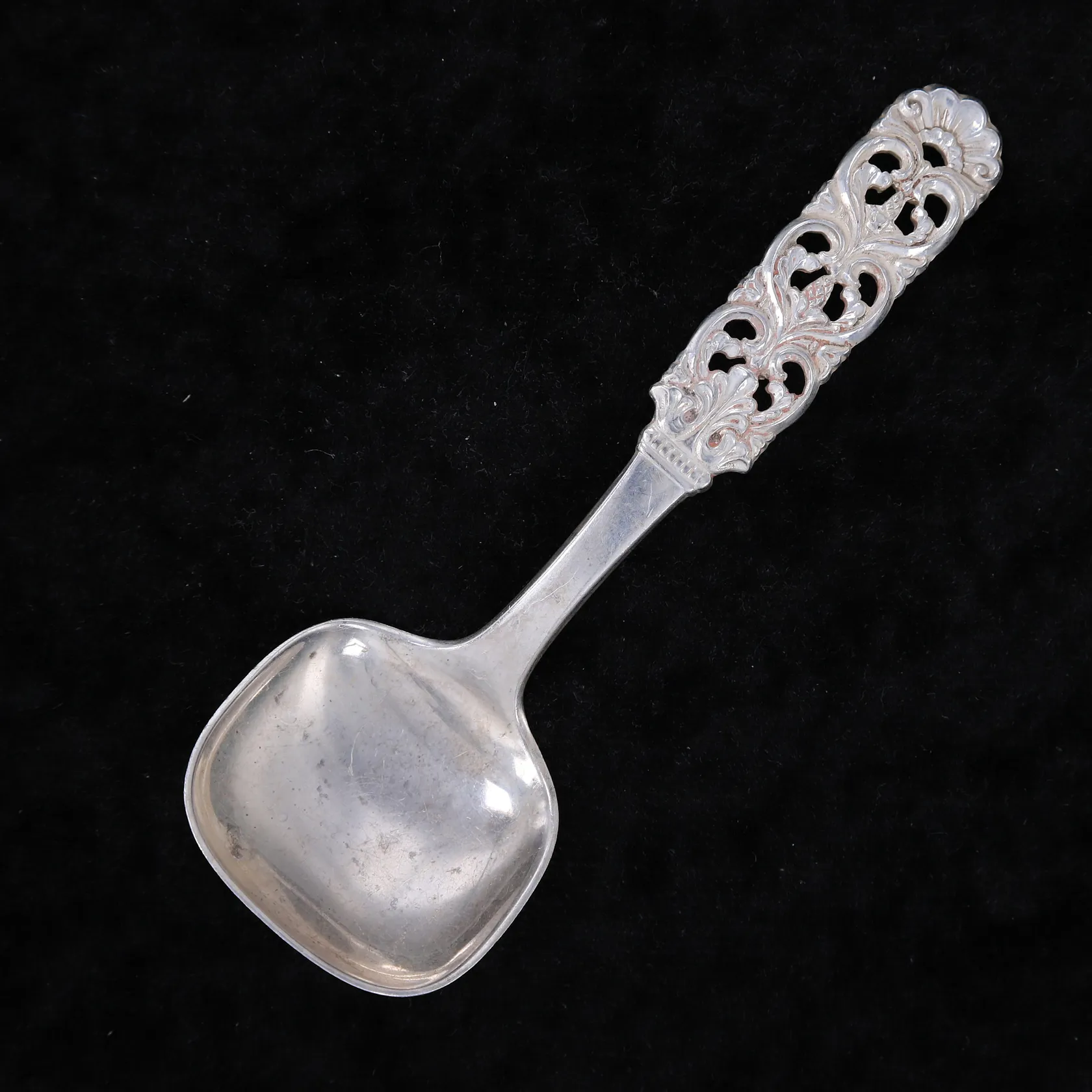 Syltetøyskje Dobbel rokokko, 11,6cm, 830S Vekt: 10,8 g Kontakt Lånekontoret for frakt