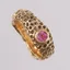 Ring med 3 fargede stener, ø16,3mm, bredde 5,6- 8mm, 14K Vekt: 8,3 g Kontakt Lånekontoret for frakt